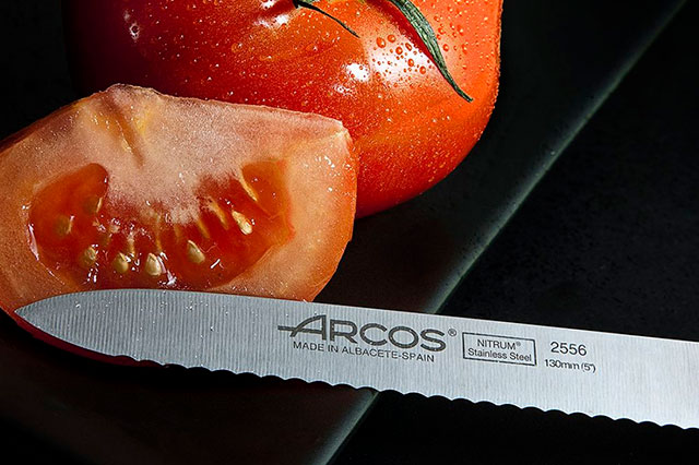 Напомним, что, кроме серии Universal, в наборах Arcos представлены ножи из кованой стали, которая имеет мелкую и равномерную структуру, что способствует исключительной остроте. Они обладают высокой прочностью и износостойкостью.